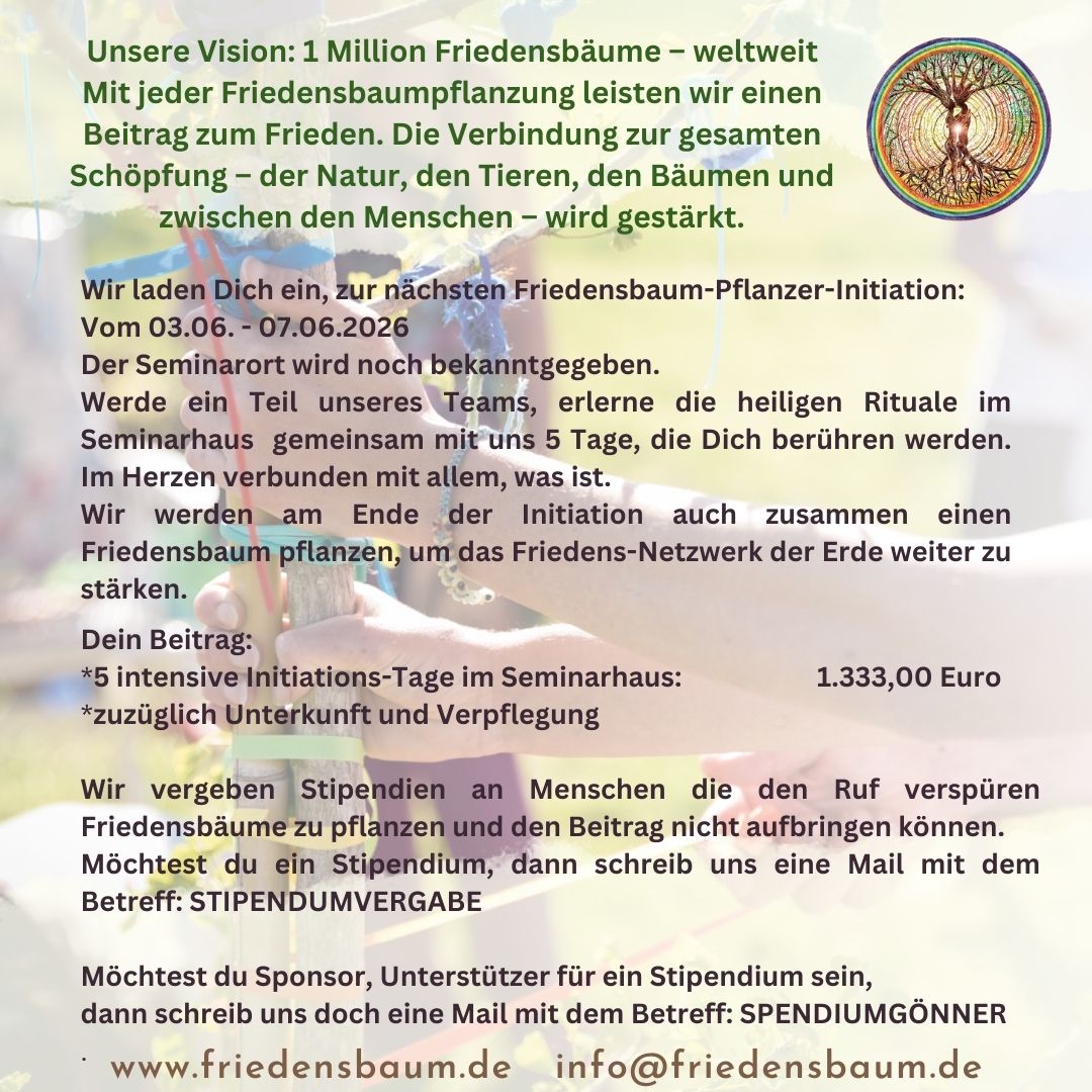 Zum Jahresübergang – Dank, Rückblick und ein Ausblick aufs neue Jahr der Friedensbaum Stiftung Liebe MitlieberInnen, PflanzerInnen, HüterInnen und SponsorInnen, zum Übergang in ein neues