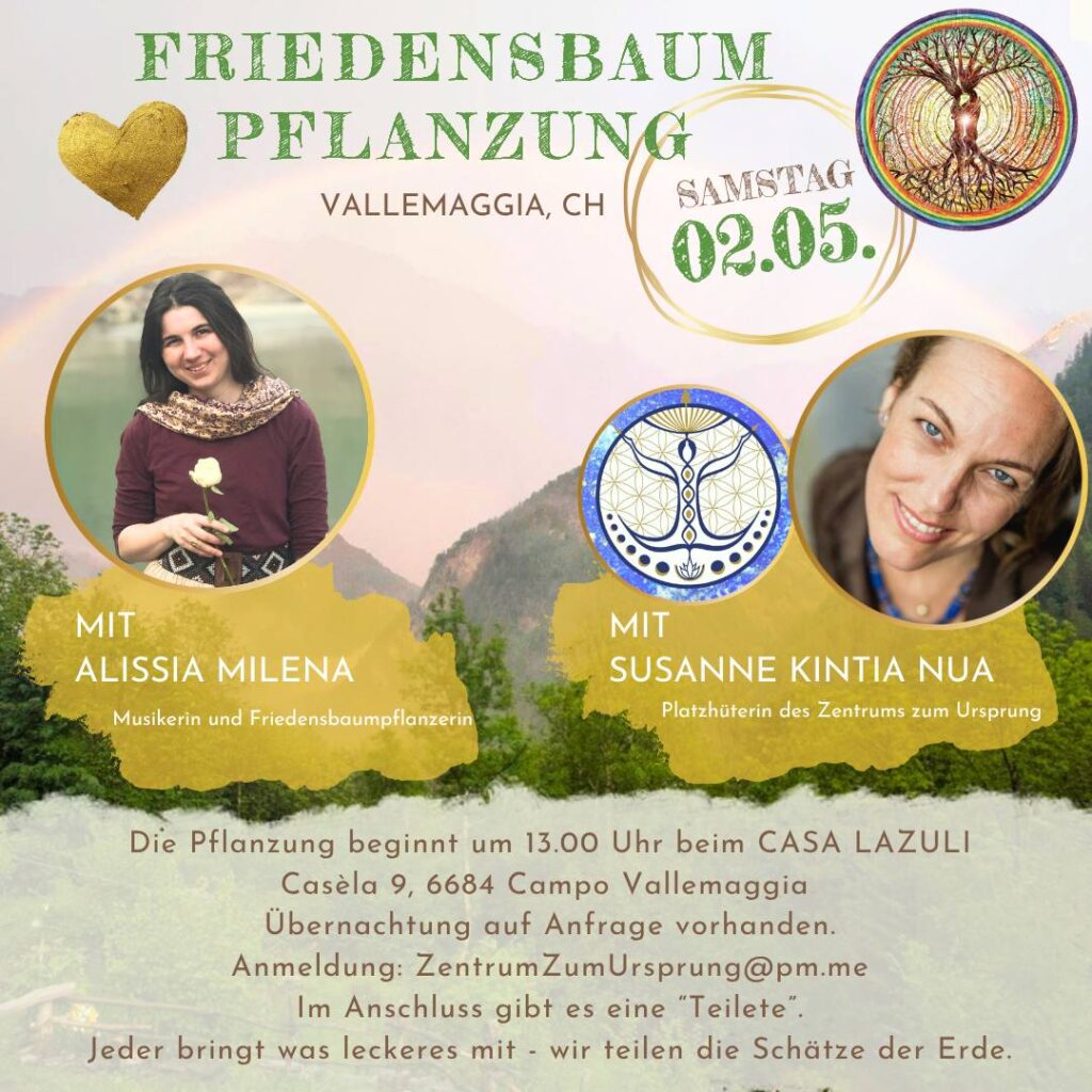 Am Samstag, den 2. Mai, findet in Vallemaggia (CH) eine besondere Friedensbaum-Pflanzung statt. Die Veranstaltung beginnt um 13:00 Uhr beim Casa Lazuli in Casèla 9, 6684 Campo Vallemaggia.