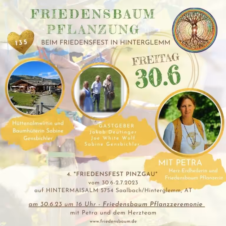 Auf dem 4. „Friedensfest Pinzgau“ pflanzt unsere Petra als Fest-Auftakt am Freitag 30.6. 16 Uhr den 134. Friedensbaum der Friedensbaum Stiftung.