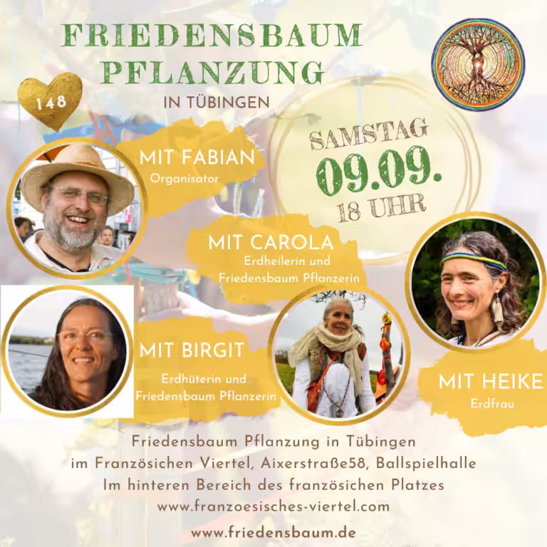 Am Samstag, den 9.9. pflanzen wir den 151. Friedensbaum in Tübingen, Deutschland.